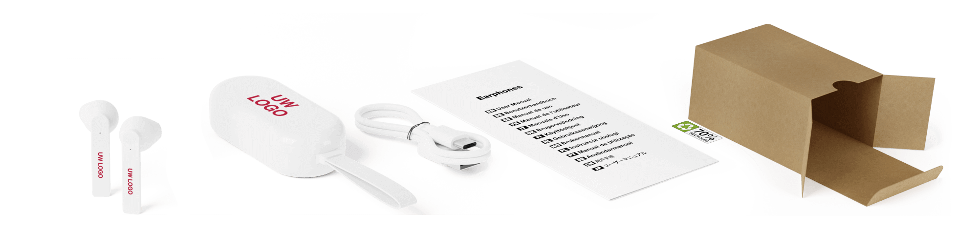 We kunnen uw logo, slogan of merkafbeelding zeefdrukken of fotoprinten op het grote drukgebied op het oplaadetui en het kleinere drukgebied op de oordopjes. Onze hoogwaardige printservices zorgen ervoor dat je merk er professioneel uitziet en afsteekt tegen het strakke uiterlijk van de oordopjes en het etui. Al onze audio producten worden geleverd met 2 jaar Flashbay garantie voor extra gemoedsrust dat uw bedrijf geassocieerd wordt met een kwaliteitsproduct.